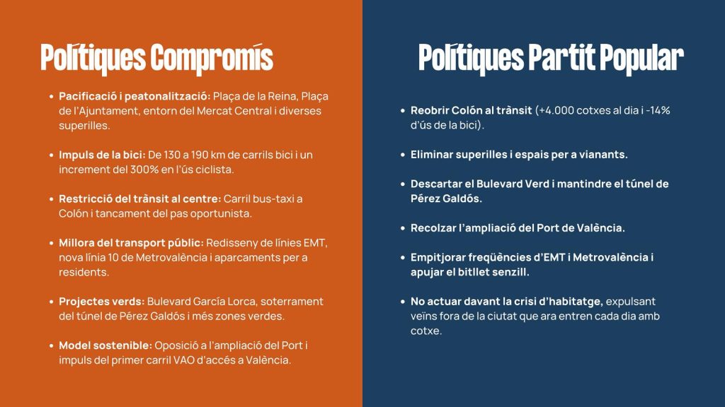 “Con Compromís, València redujo el tráfico, pacificó el centro y mejoró la calidad del aire. Ahora tenemos más atascos, más ruido y una ciudad menos habitable. No se trata de poner cámaras como única medida, sino de recuperar un modelo que funciona y que vuelve a poner la salud por delante del humo y del ruido”, ha explicado Grezzi.