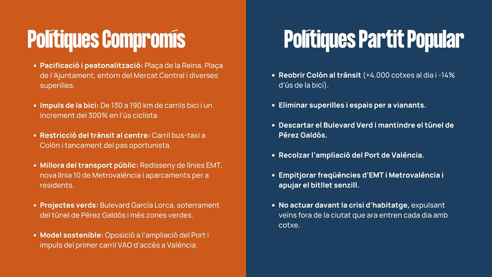 • La portavoz de Compromís Papi Robles y el concejal Giuseppe Grezzi presentan un plan alternativo con ocho medidas para reducir el tráfico, mejorar el transporte público y recuperar espacio para las personas
