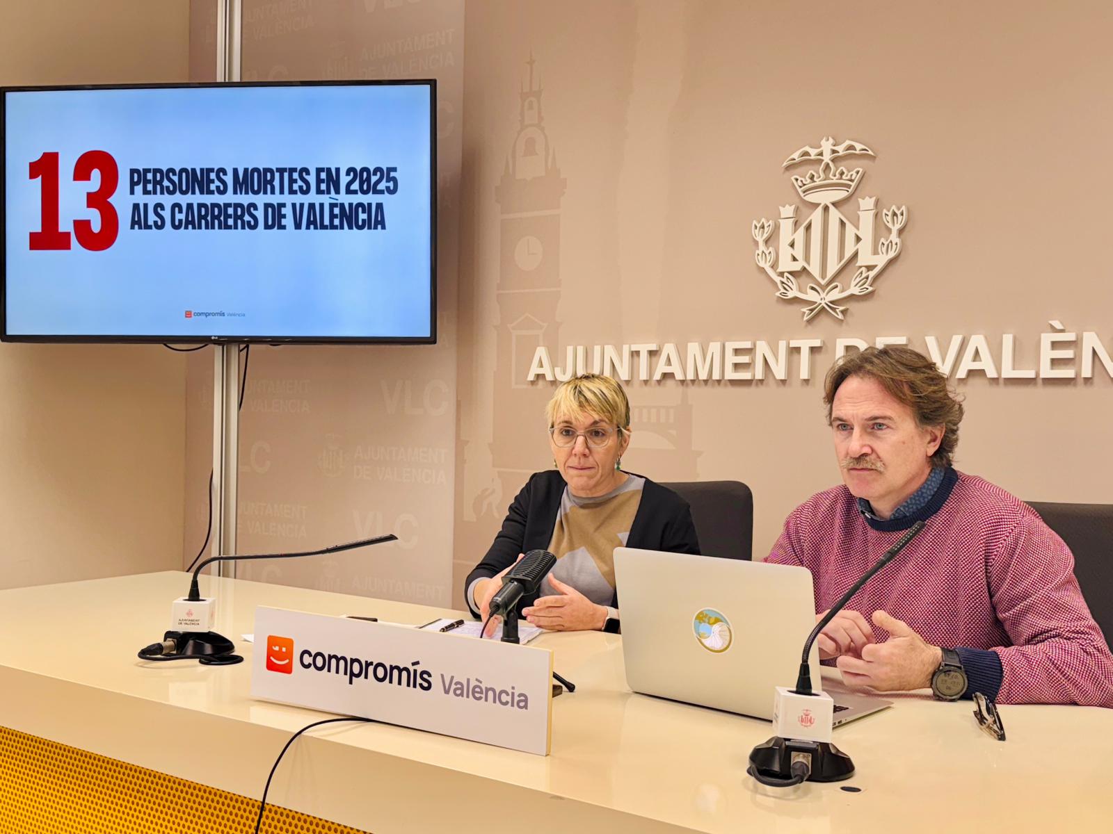 Compromís per València ha presentado la moción que mañana llevará el concejal Giuseppe Grezzi a la Comisión de Urbanismo, en la que solicita la aprobación inmediata del segundo Plan de Seguridad Vial de la ciudad ante unas cifras de siniestralidad que la portavoz Papi Robles ha calificado de “absolutamente inasumibles”. Según una recopilación de casos publicada en los medios de comunicación, este año ya han fallecido 13 personas en accidentes de tráfico en el término municipal, una cifra que todavía podría aumentar, ya que el año no ha finalizado y los datos oficiales necesitan un periodo de consolidación.