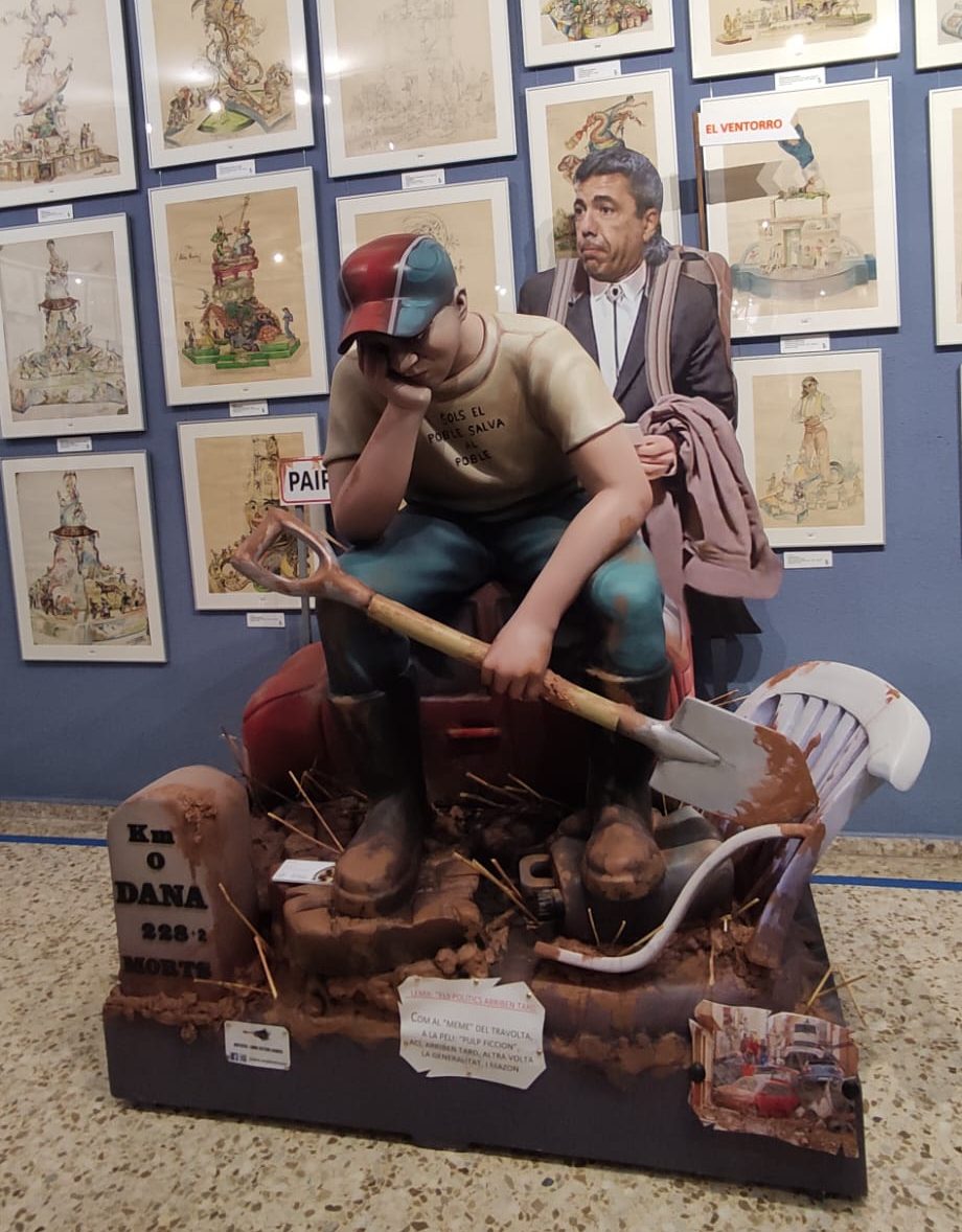 El ninot objeto de la censura que denuncia Compromís representa a una persona afectada por la dana que lo ha perdido todo, acompañada de una figura realista de Carlos Mazón, a quien se reprocha su ausencia en los momentos clave de la emergencia. “La sátira política y social es la esencia del ninot y de la fiesta de las Fallas. Censurarla es no entender ni respetar nuestra cultura y es ya demasiado habitual con los gobiernos del Partido Popular”, ha añadido el concejal Pere Fuset.
